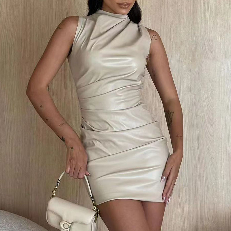 Women's Mini Dress Sheath Dress Leather Dress Fashion Modern Office Going out Regular Fit Plain Sleeveless High Neck Black White Summer Spring Fall Winter