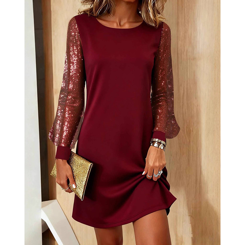 Women's Mini Dress Sequin Dress Party Dress Cocktail Dress Elegant Fashion Party Christmas Cocktail Party Regular Fit Plain Long Sleeve Crew Neck Black Wine Spring Fall Winter
