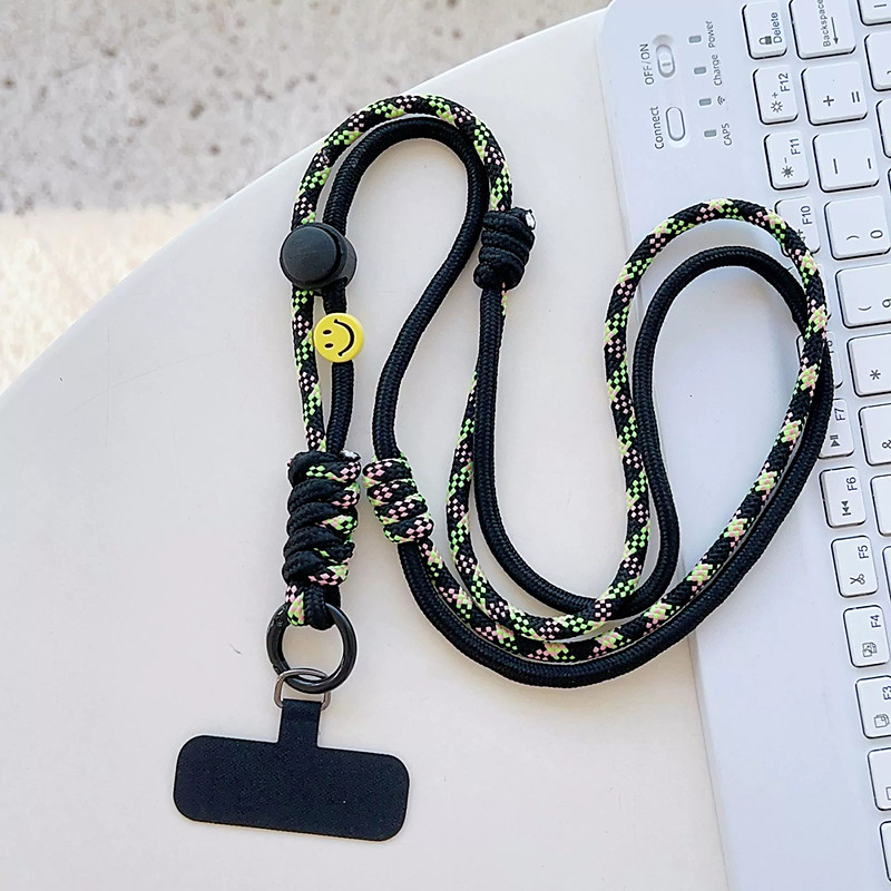 New fashionable and trendy shoulder strap with adjustable long rope for mobile phone hanging neck and crossbody cute smiling face hanging chain outdoor sturdy hanging rope for women