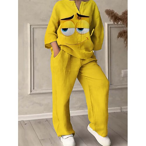 Damen Aktiv Mode Hosen-Sets Langarm V Ausschnitt 3D-Druck Druck Urlaub Täglich Ferien Gelb Rote Blau Sommer Normale Passform