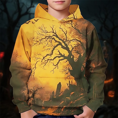 Halloween Jungen 3D Baum Kapuzensweatshirt Langarm Frühling Herbst Mode Streetwear Kinder 4-12 Jahre Mit Kapuze Outdoor Lässig Täglich Normale Passform