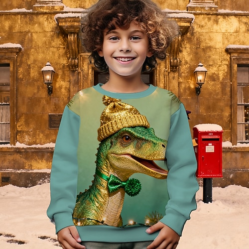 Weihnachten Jungen 3D Dinosaurier Sweatshirt Langarm Frühling Herbst Mode Basic Kinder 4-12 Jahre Rundhalsausschnitt Outdoor Lässig Täglich Normale Passform