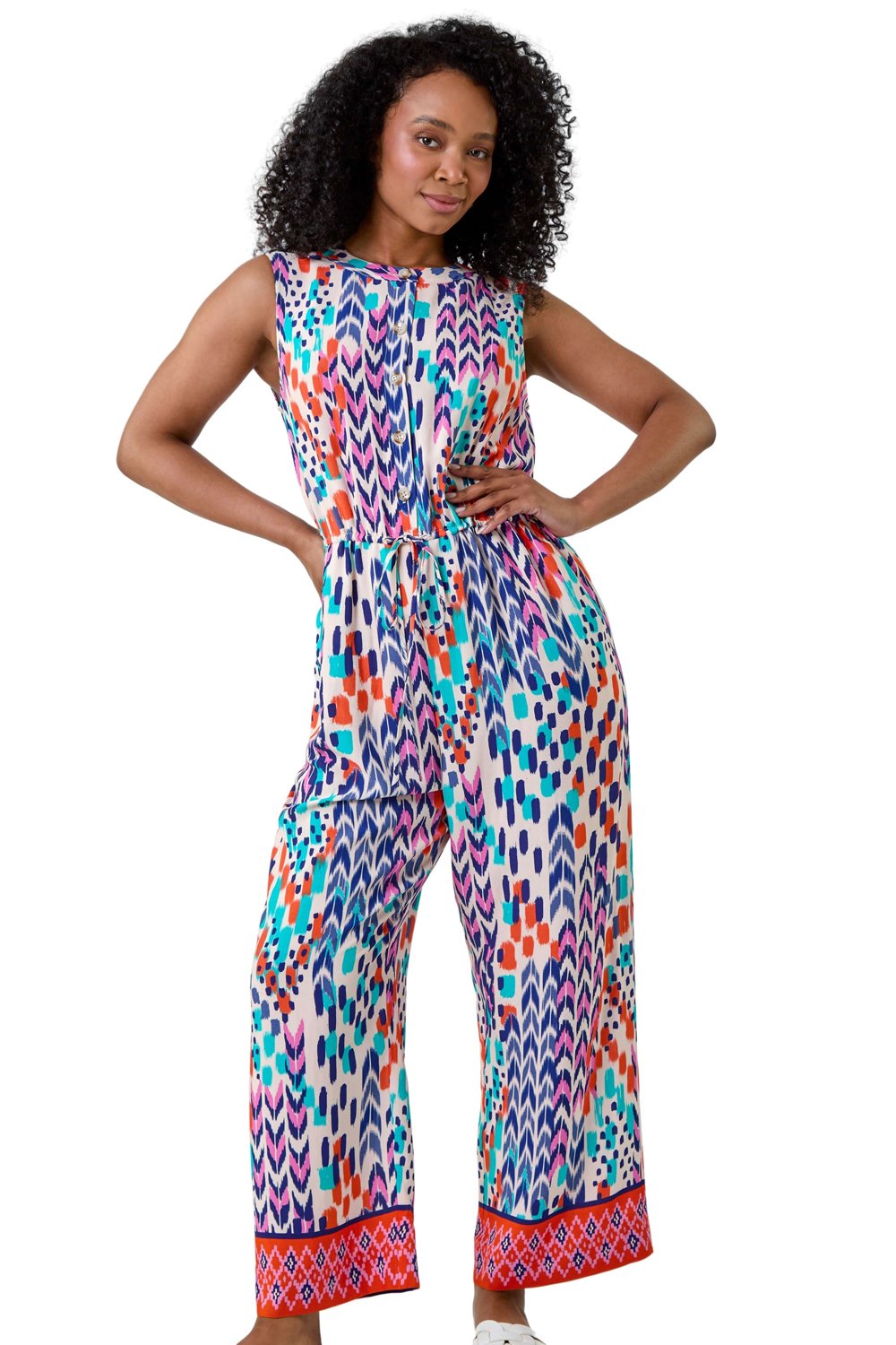 Roman Womens Petite Aztec Border Print Jumpsuit - Blue - Size 16 UK | Roman Sale | Discount Designer Brands