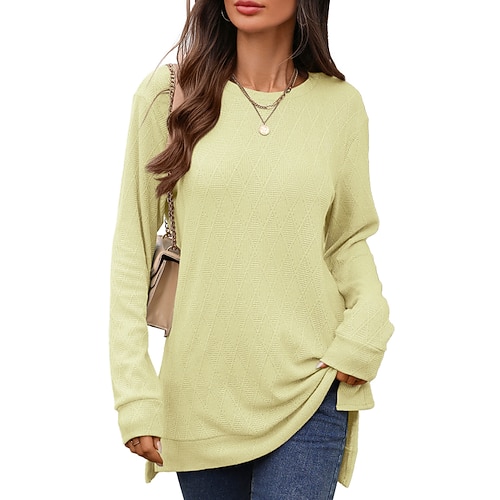 Per donna Maglietta Semplice Casual Manica Lunga Girocollo Top Regolari Quotidiano Weekend Nero Giallo Rosa Blu marino Autunno