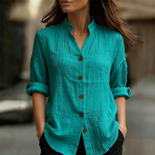 Per donna Blusa Top Eleganti Tinta unica Semplice Elegante Vintage Festa Manica Lunga Collo Alto Top Regolari Lavoro Quotidiano Ferie Arricciato Bottoni Nero Bianco Rosa Rosso Blu Reale Primavera