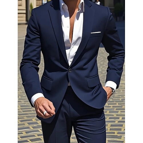 Uomo Feste Completi Dentellato Bavero classico Blu verde Nero Moda Casual Tinta unita Vestibilità aderente 2 pezzi Monopetto Due Bottoni