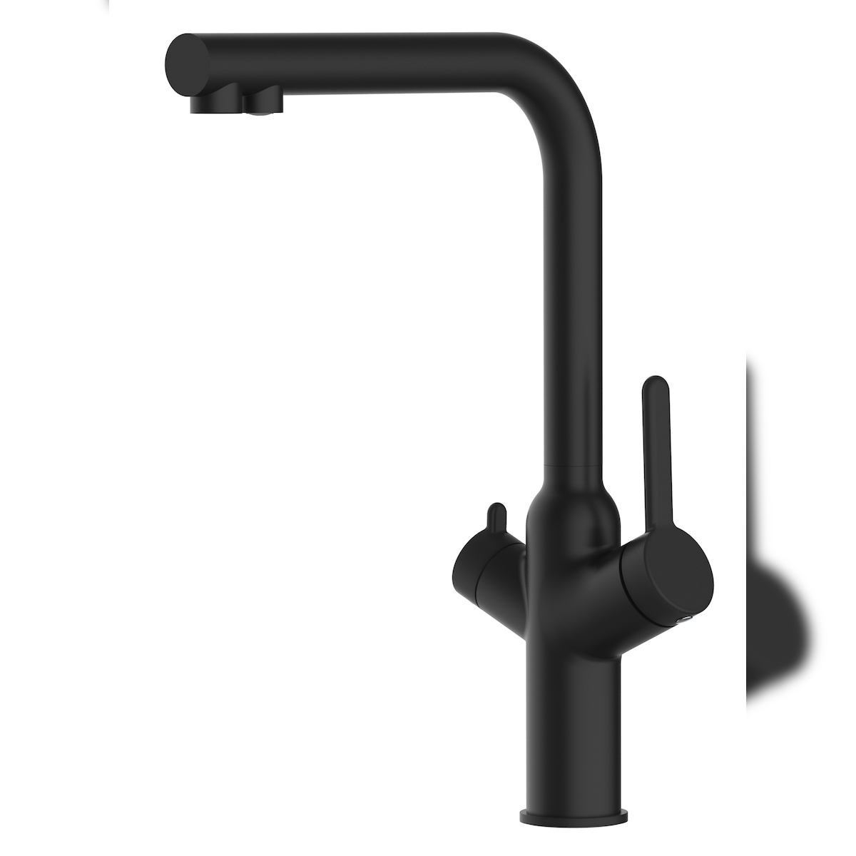Vizio 3 Wege Wasserhahn Küchenarmatur Spültischmischer BOD, Schwarz Matt mit 360° schwenkbarem L-Auslauf
