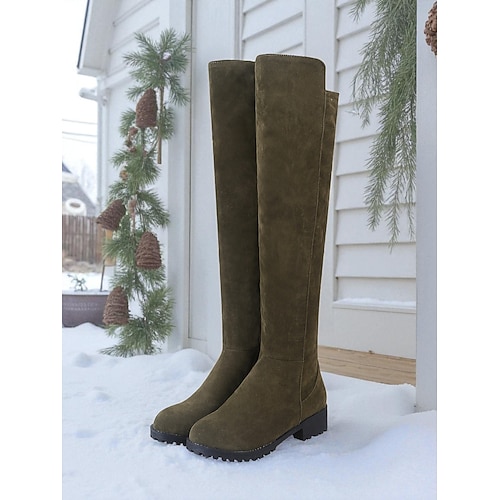 Damen-Overknee-Stiefel aus Wildleder mit Reißverschluss, Blockabsatz, bequem und schick für Winter oder Freizeitaktivitäten