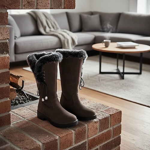 stivaletti invernali da donna in finta pelle scamosciata marrone – fodera in pelliccia morbida e ciabatte da neve calde e comode, comode da indossare sia all'interno che all'esterno