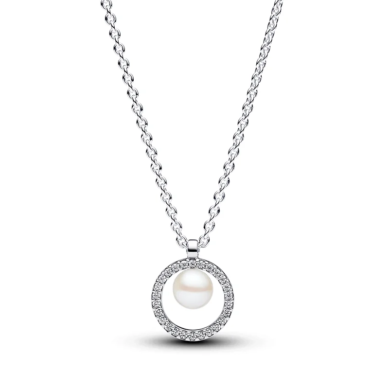 PANDORA - Collierhalsband med Cirkel & Sötvattenspärla
