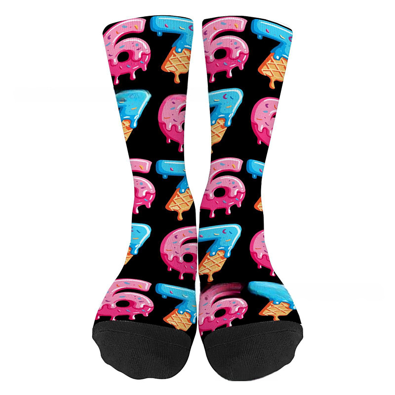 Fun Six Seven Meme Design Socks Creative 67 Pattern Novelty Casual Crew Socks with Soft Comfortable Fabric for Daily Wear Gift and Fashion Style