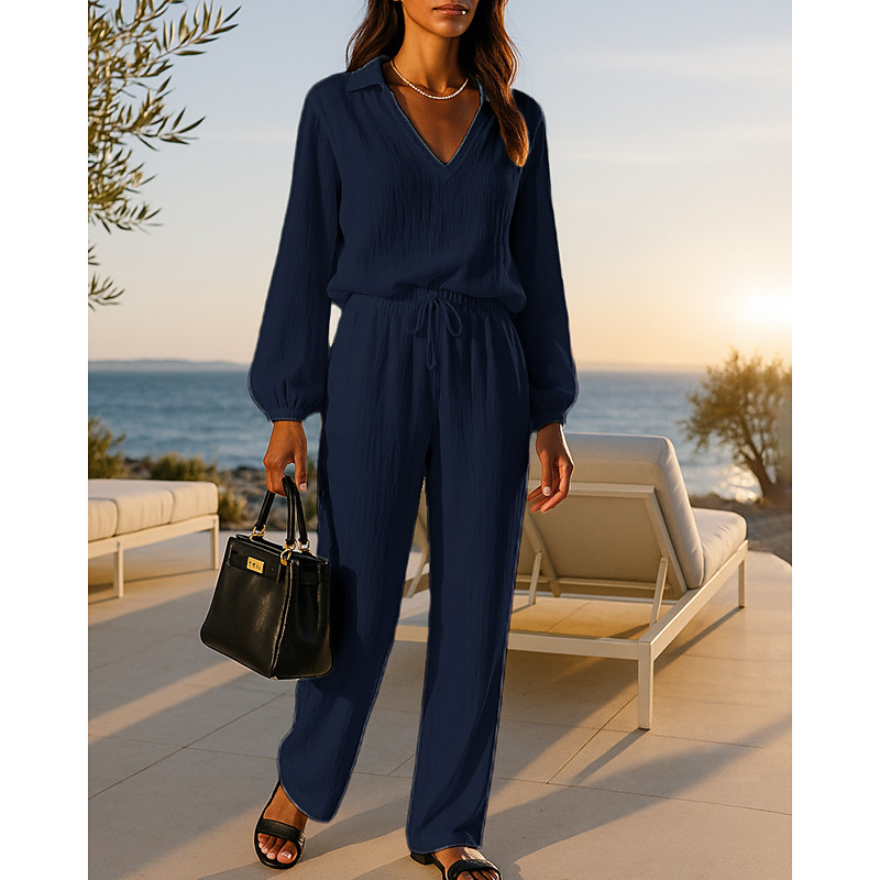 Women's 2 Piece Outfits Lounge Sweatsuit Drawstring Solid Colored Clothing Suit Fall Black White Vocation Outdoor Travel Lightweight Fashion Long Sleeve Sport Activewear Micro-elastic Regular Fit