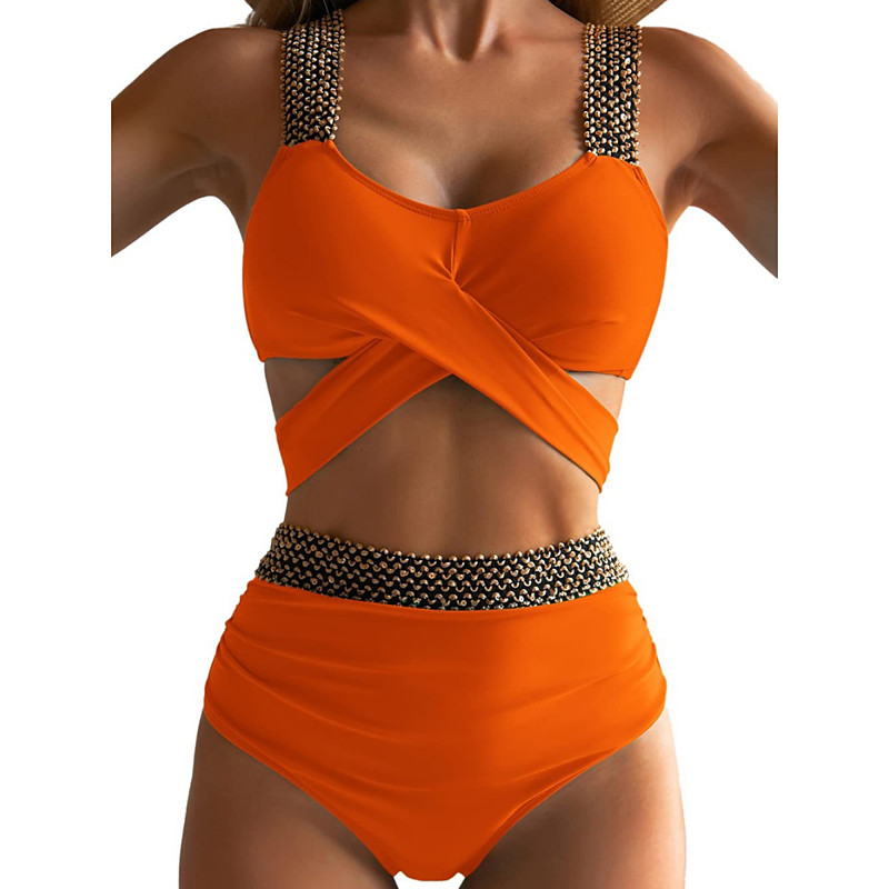 Women's Normal Swimwear Bikini 2 Piece Thong Swimsuit Glitter Vacation Fashion Solid Color Plunge Sleeveless Bathing Suits