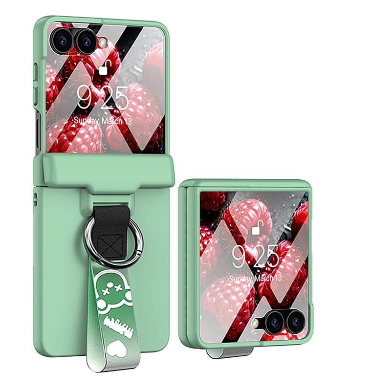 Phone Case For Samsung Galaxy Z Flip 7 Z Flip 6 Z Flip 5 Back Cover with Screen Protector Support Wireless Charging with Wrist Strap Retro PC