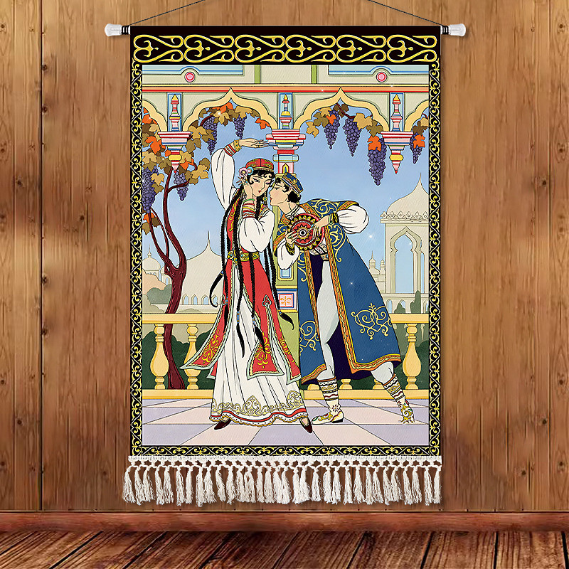 Beauty Uyghur Ethnic Style Wall Tapestry, Artistic Background Decoration, Boho Hanging Art for Bedroom, Living Room, or Cafe