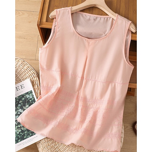 Damen Weste aus Baumwollleinen Sommeroberteile Bluse Einfarbig Elegant Damen Stilvoll Ärmellos U-Ausschnitt Normale Oberteile Täglich Arbeit Ausgehen Gerafft Patchwork Bestickt Weiß Champagner Rosa