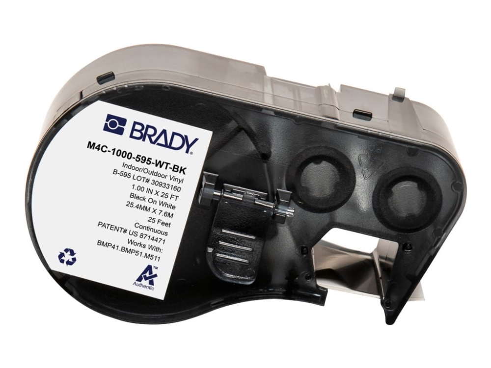 Brady B-595 - Vinyl - blank - permanent aggressivt akryllim - svart på hvitt - Rull (2,54 cm x 7,62 m) 1 rull(er) kontinuerlig etikettkassett med bånd - for Brady BMP53
