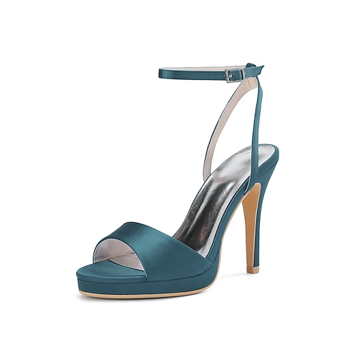 sandali da sposa eleganti con cinturino alla caviglia e tacco a spillo da donna, scarpe da sposa con tacco alto e punta aperta per la sposa, tacchi da cerimonia bianchi minimalisti