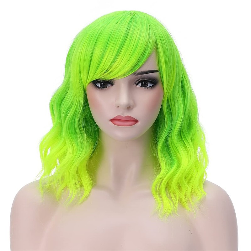 Wig Short Colorful Curly Wavy Synthetic Bob Wigs with Air Bangs Natural Wigs for Women