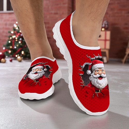 scarpe slip-on da uomo con Babbo Natale - design natalizio con Babbo Natale, comode calzature invernali per feste di Natale, relax e vacanze