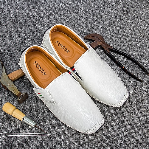 mocassini slip-on da uomo in pelle bianca – mocassini casual traspiranti con dettagli cuciti per l'estate e i viaggi