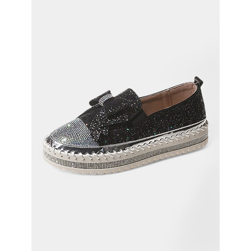 Glitter Bridal After Party Shoes for Bride, Sparkly Bow Slip-On Wedding Reception Flats