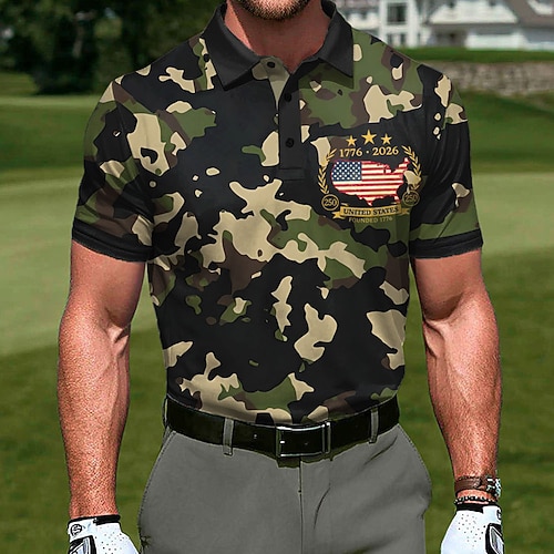 Giorno dell'Indipendenza Americana Per uomo Mimetico Bandiera Americana Polo Sportivi Manica Corta Magliette polo Camicie con Colletto Casual Athleisure Abito da festa Bottoni Estate Primavera Verde