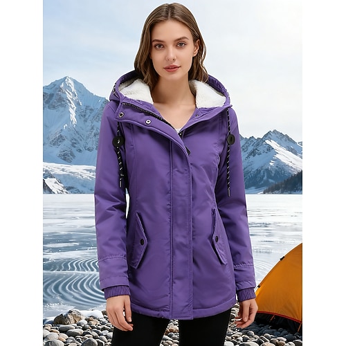 Damen Parka Strasse Normal Freizeitskleidung Herbst Winter Lang Mantel Lose Alltag Sport Jacken Langarm Volltonfarbe Reißverschluss Tasche Purpur Rosa Wein / Daunenjacken Parkas / Wasserdicht