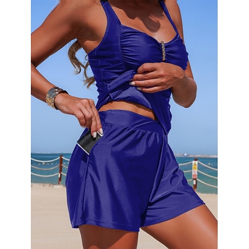 Per donna Costumi da bagno Tankini Due pezzi Shorts Costume da bagno Controllo della Pancia Vita alta Snello Senza schiena Vacanza Abbigliamento da Spiaggia Tinta unica Scollo a V Senza Maniche
