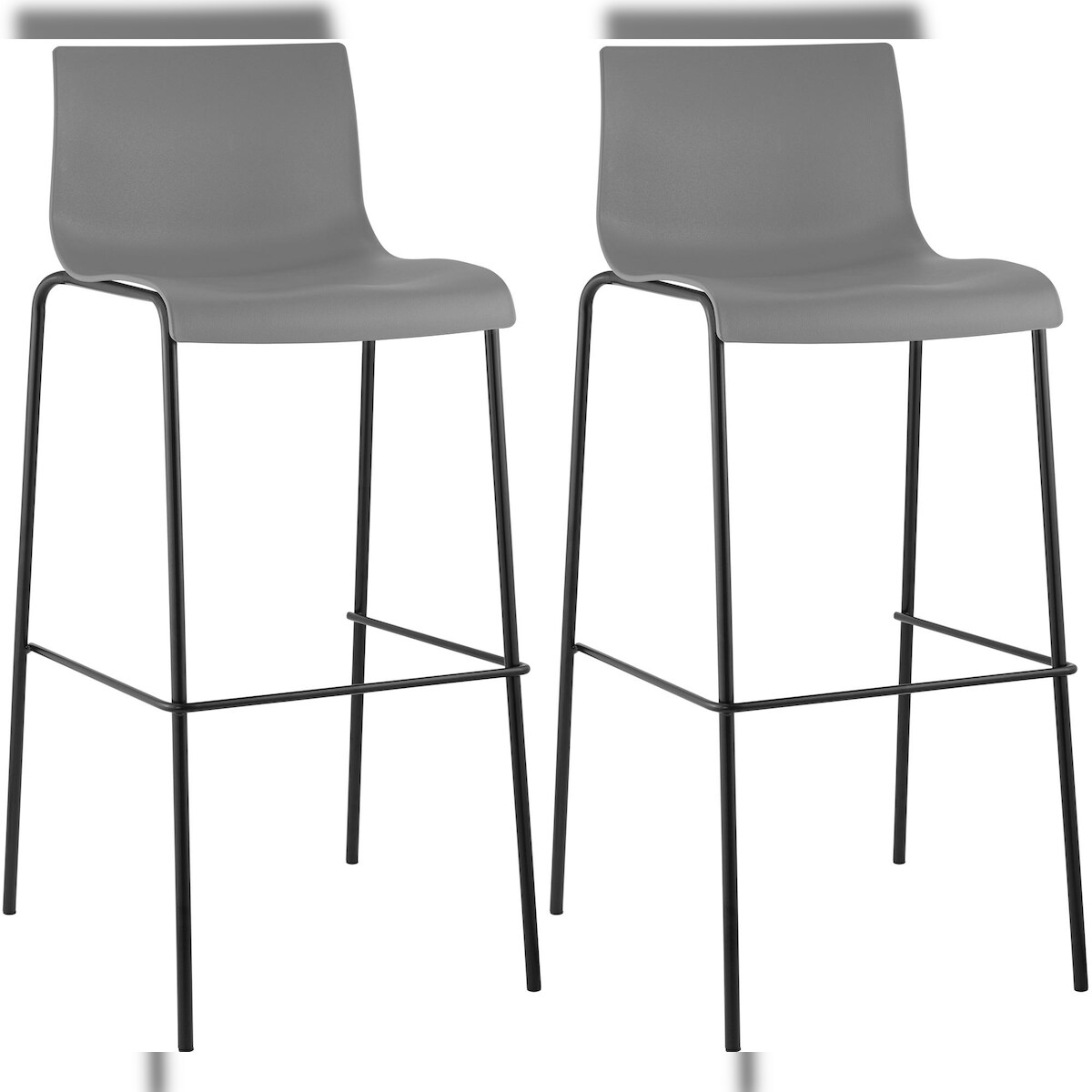 DELUKE 2er Set Barhocker TENAR - Kunststoff Grau 43x48x100 cm Schwarz | Barstuhl Mit Lehne Tresenhocker Tresenstuhl Kneipenhocker Kneipenstuhl