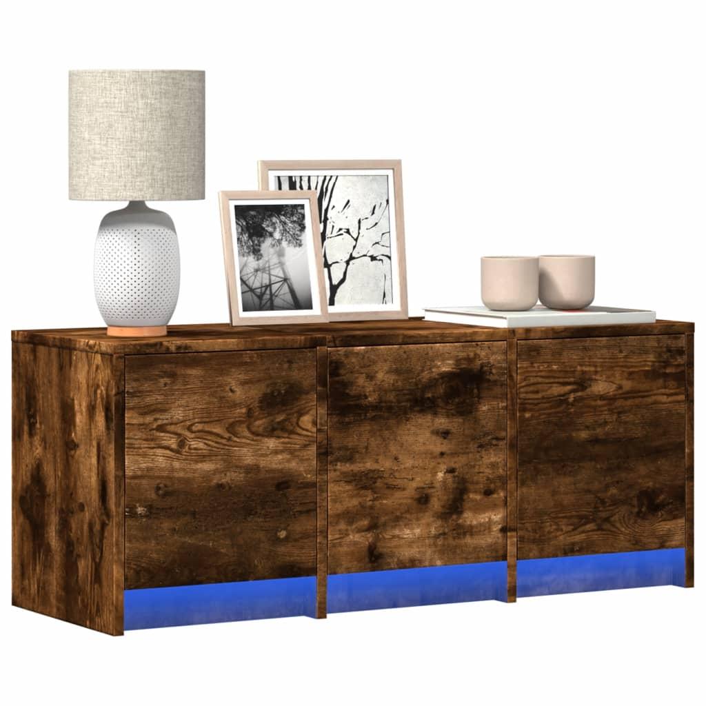vidaXL Meuble TV avec lumières LED chêne fumé 135x39x30 cm