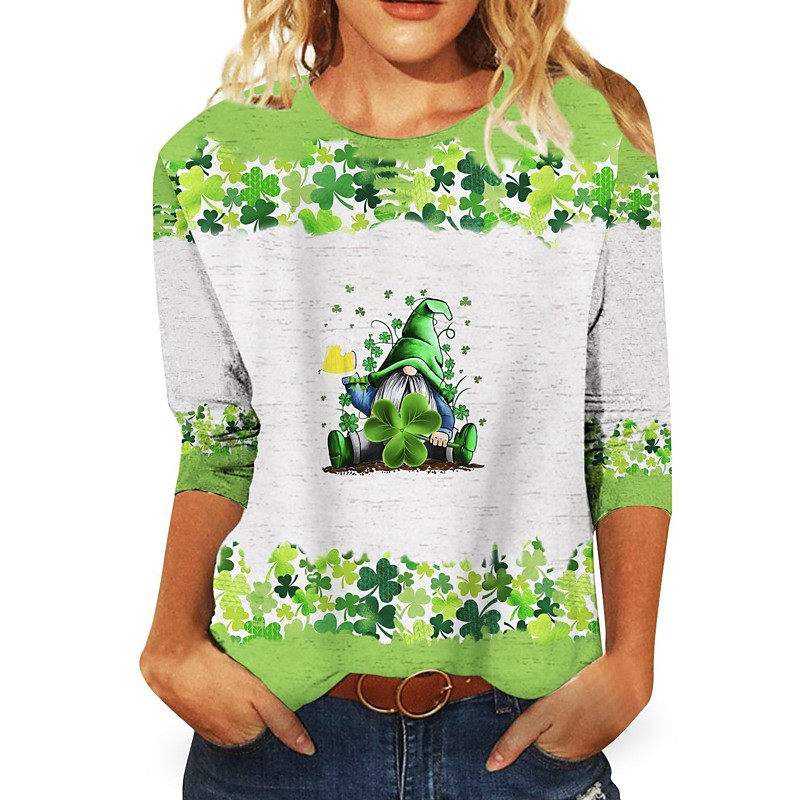 St. Paddy's Day St. Patrick's Day Women's T Shirt Shamrock Fashion Long Sleeve Round Neck Regular Tops Casual St.Patrick's Day Print Grass Green White Light Green Dark Green Green Spring Fall
