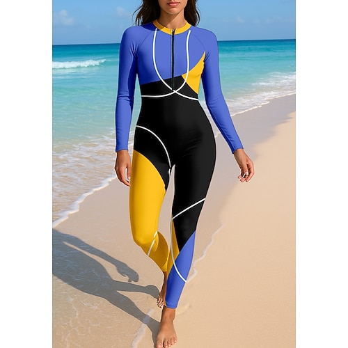 Per donna Top sottomuta Costumi da bagno interi Muta da sub Patchwork UPF50 Asciugatura Rapida Alta elasticità Manica Lunga Costume da Bagno Surf Immersione Snorkeling Estate