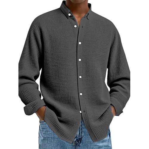Per uomo Camicia Camicia a nido d'ape Camicia casual Camicia con Bottoni Nero Bianco Vino Blu marino Blu Manica Lunga Semplice Bavero Casuale Quotidiano Abbigliamento Moda Streetwear