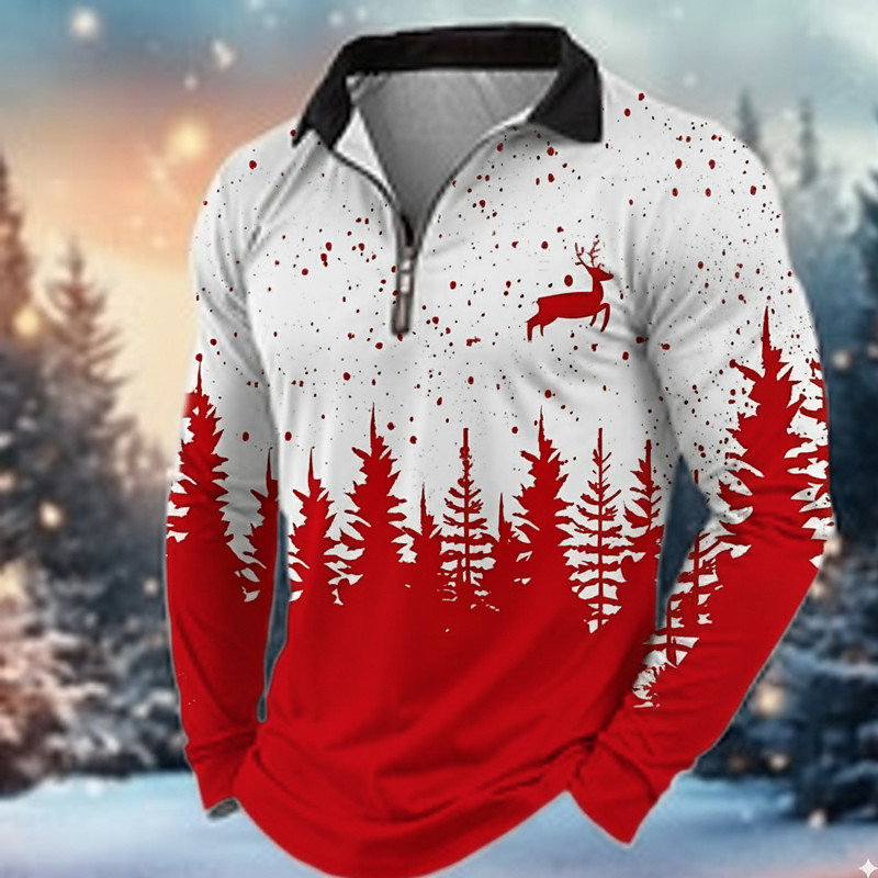 Christmas Men's Reindeer Polo Long Sleeve Turndown Modern Leisure Sports Outdoor Athleisure Festival Zipper 3D Print Spring Fall Winter Black Red Blue