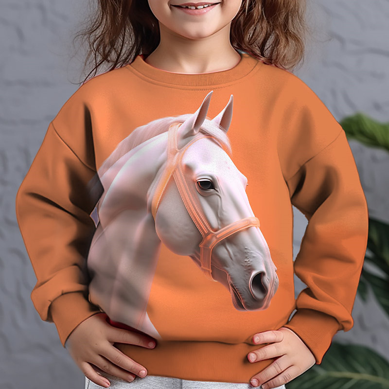 Girls' 3D Animal Horse Sweatshirt Long Sleeve 3D Print Fall Winter Fashion Streetwear Adorable Polyester Kids 3-12 Years Outdoor Casual Daily Regular Fit