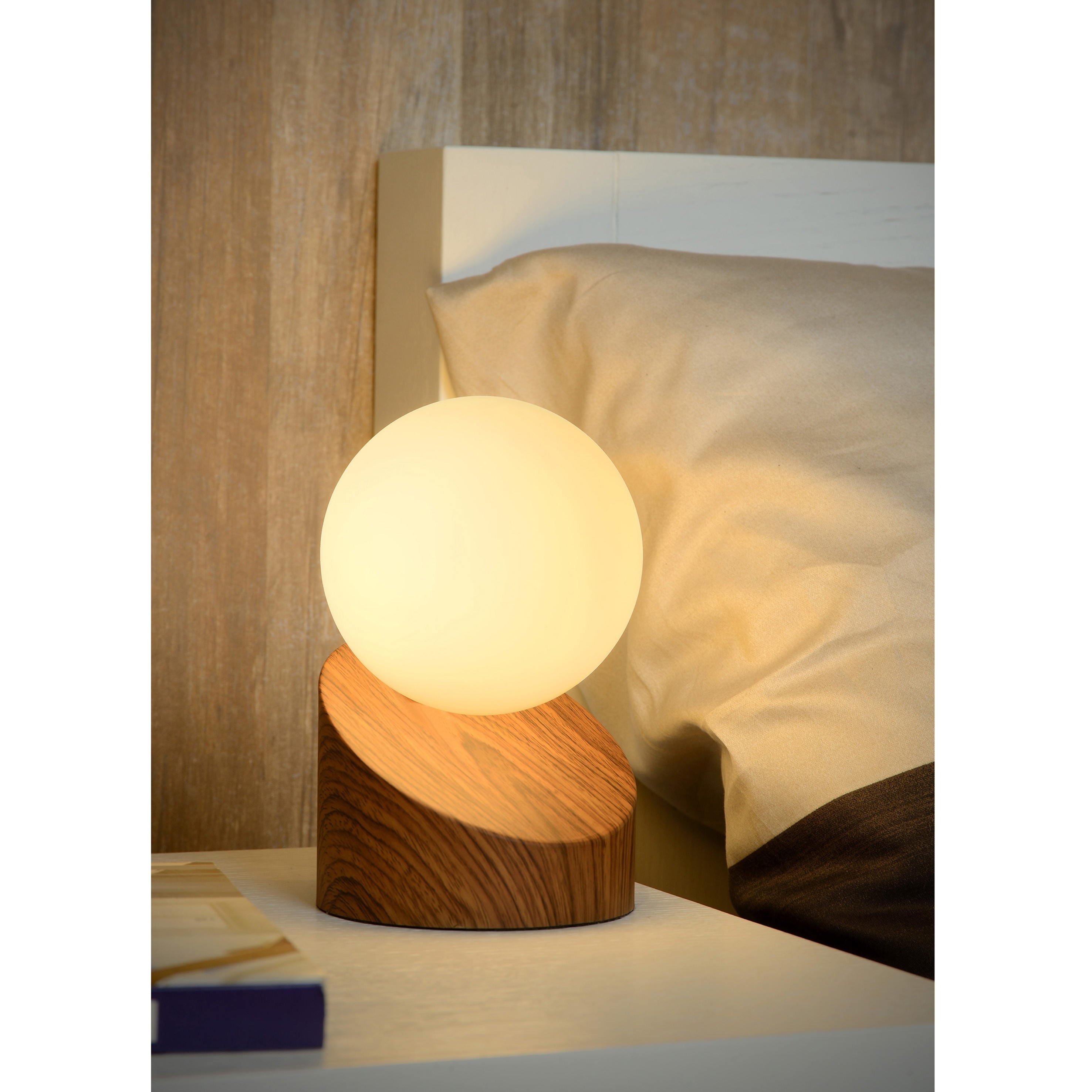 Lucide Len - lampe à poser - 16 cm - bois et opale