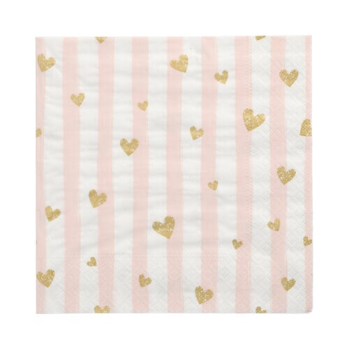PAPSTAR 30 Servietten, 3-lagig 1/4-Falz 33 cm x 33 cm pink "Golden Hearts" (89704, 30 Stück)