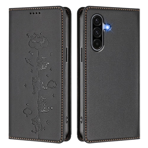 Handy Hülle Handyhüllen Für Samsung Galaxy A07 A56 A36 A26 A16 A06 A55 5G A35 5G A25 A15 Brieftaschenhülle Stoßfest Katze TPU PU-Leder