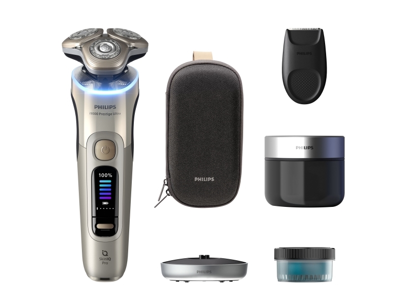 Philips i9000 Prestige Ultra XP9403 Våt og tørr elektrisk barbermaskin med SkinIQ Pro, Roterende hode, Gull, SkinIQ Pro, Rustfritt stål, LCD, Android, iOS