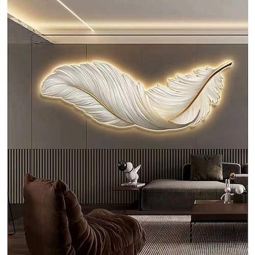 LED-Lampenmalerei, Kunstharz, Präzisionsschnitzerei, warme Federlampe, 3000 K, mit Fernbedienung und EU-Stecker, Bodenplattenmalerei, minimalistisches Veranda-Wandbild, Sofa-Hintergrund, Wandbehang, Malerei, AC 220 V