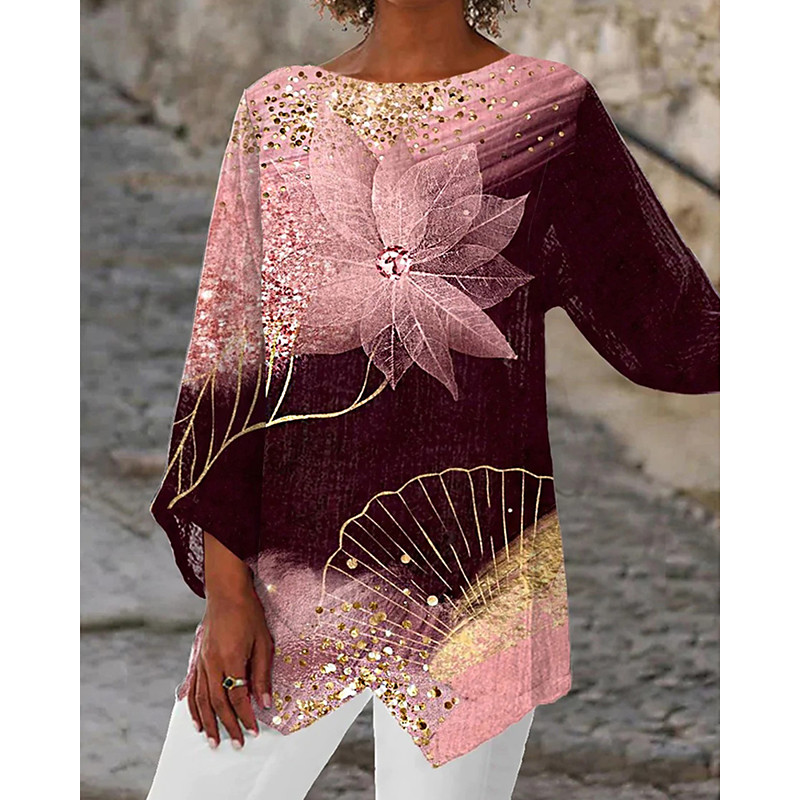 Women's T Shirt Tee Top Floral Fashion Modern Long Sleeve Crew Neck Regular Tops Daily Print Asymmetrical Pink Spring Fall