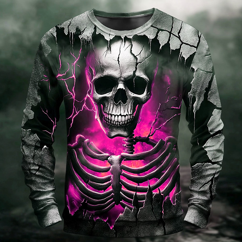 Skull Men's 3D Skeleton T Shirt Long Sleeve T shirt 3D Print Crew Neck Shirt Fashion Exaggerated Street Casual Daily Summer Spring Fall Clothing Apparel