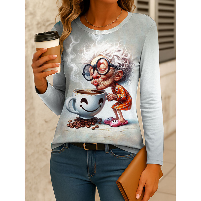 Women's T Shirt Graphic Cartoon Gradient Vintage Stylish Classic Long Sleeve Crew Neck Regular Tops Daily Print Blue Pink Purple Green Gray Spring Fall Winter
