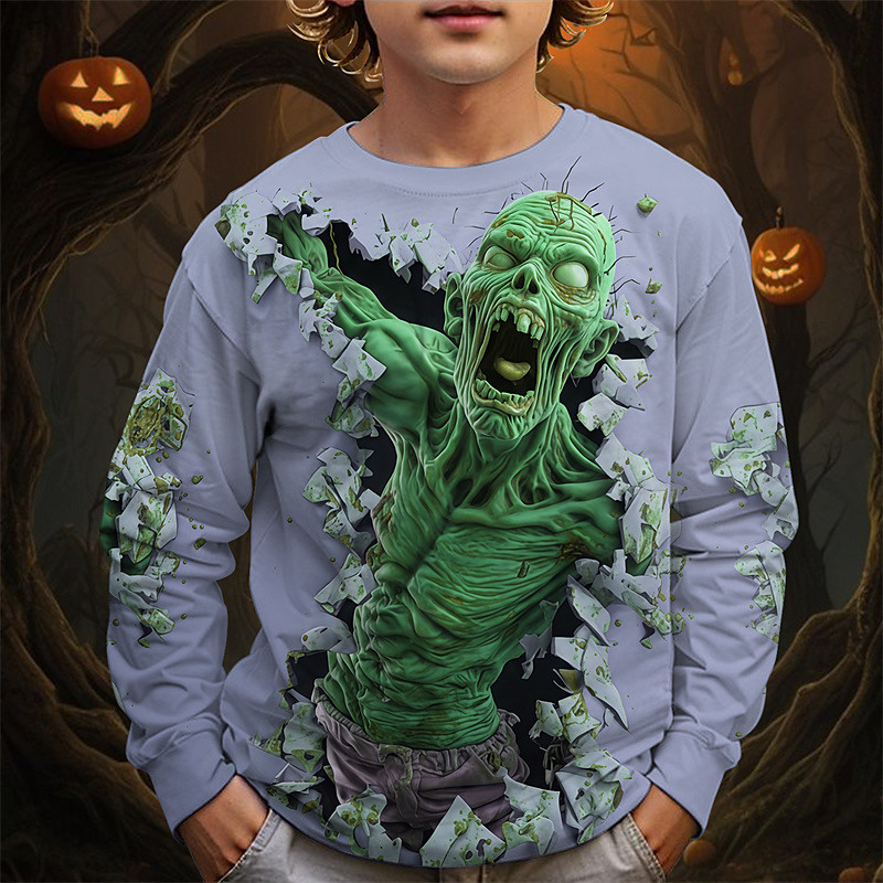 Halloween Boys' 3D Skull Sweatshirt Long Sleeve Spring Fall Fashion Basic Kids 4-12 Years Crew Neck Outdoor Casual Daily Regular Fit