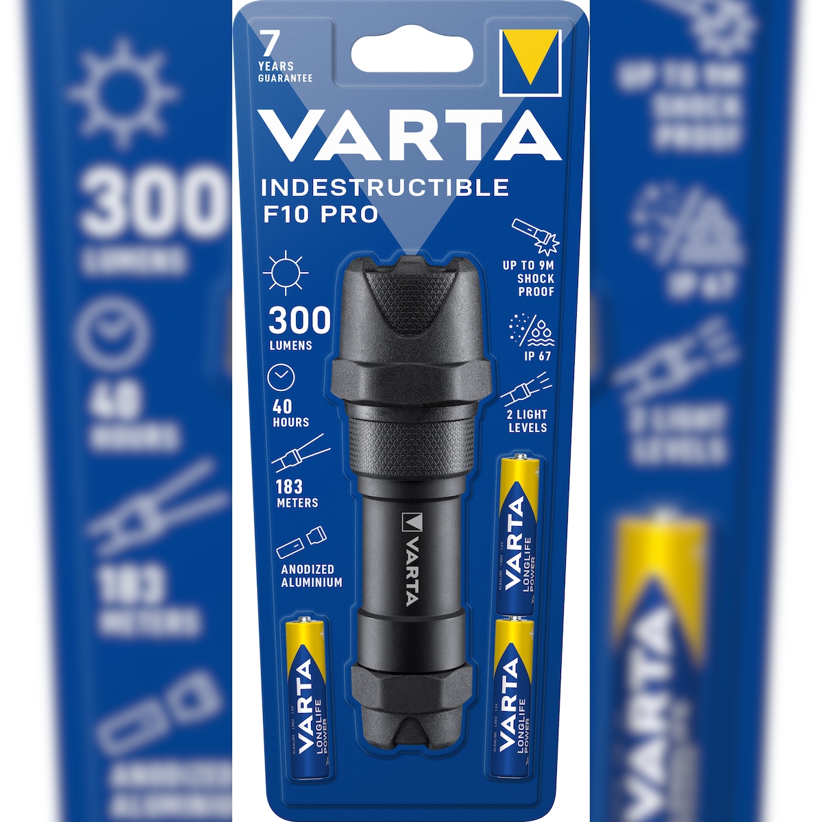 Varta LED Taschenlampe Professional Line, Indestructible 300lm, inkl. 3x Batterie Alkaline AAA, Retail Blister