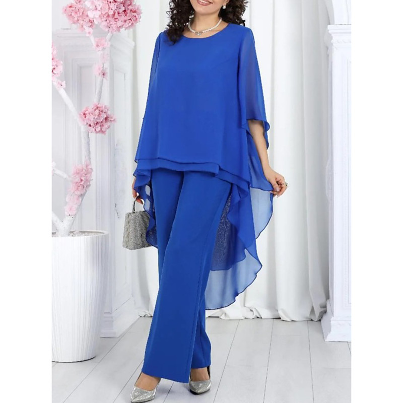 Women's Elegant Blouse 3/4 Length Sleeve Bell Sleeve Layered Formal Blue Black Pink Summer Regular Fit