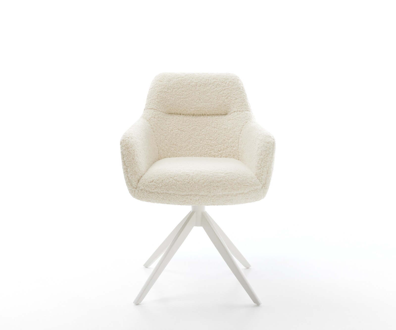 DELIFE Draaistoel Alja-Flex met armleuning bouclé zacht beige kruisframe breed wit 360° draaibaar rocker-functie pocketveer kern