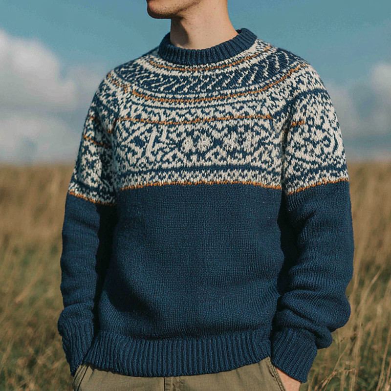 Christmas Men's Fair isle Sweater Pullover Sweater Jumper Knitwear Crewneck Casual Vacation Daily 3D Print Keep Warm Long Sleeve Spring Fall Winter Blue