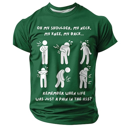 T-Shirt Grafica Umoristica da Uomo - Umorismo sull'Invecchiamento e Dolori al Corpo 'Dolore nel Culo' Citazione a Maniche Corte